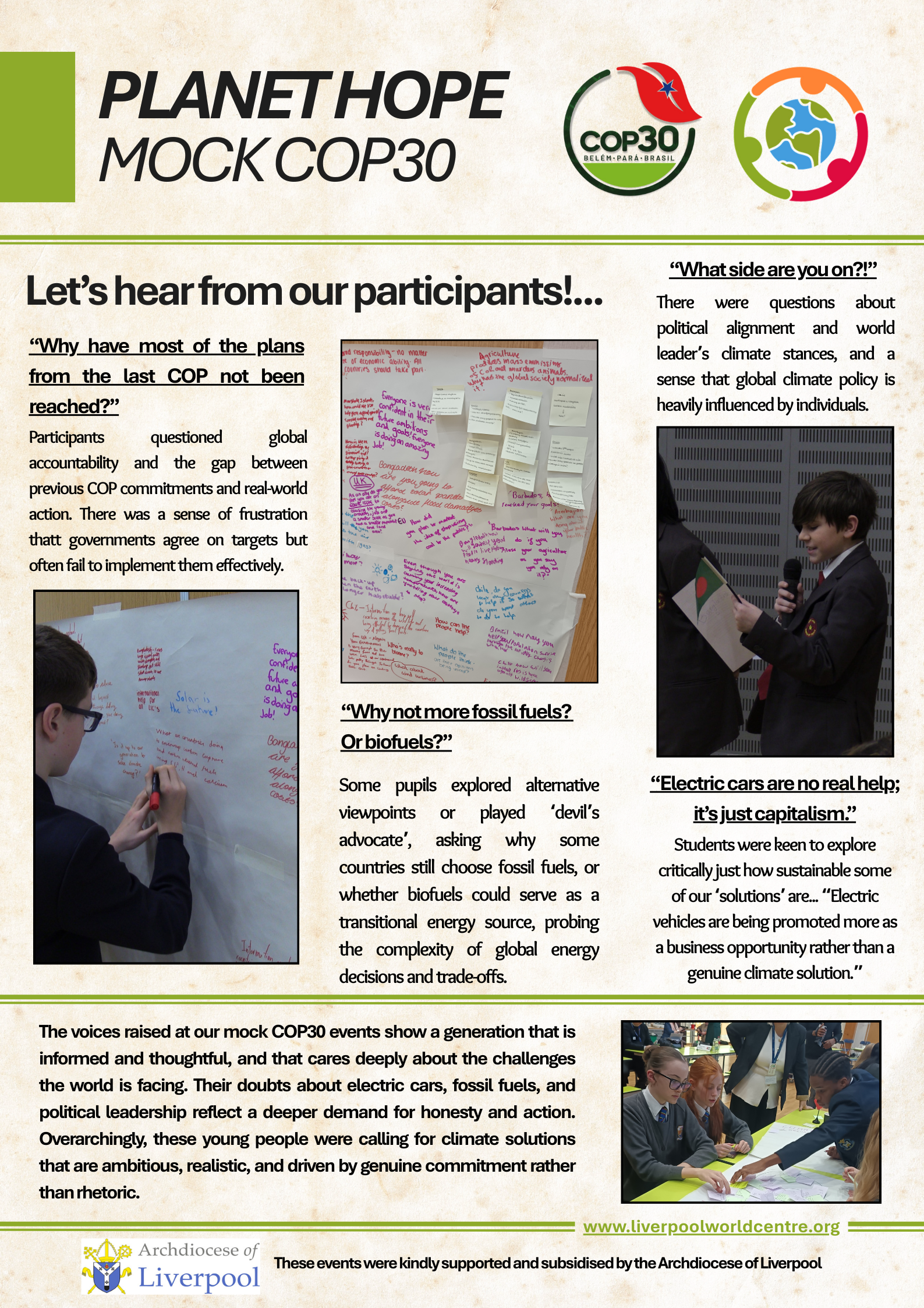 Over recent years, we have developed our youth COP model, delivering 17 conferences via 57 local schools (supported by Erasmus+ & Merseyside Recycling and Waste Authority). Demand is high. The issues are high on local, national and internat